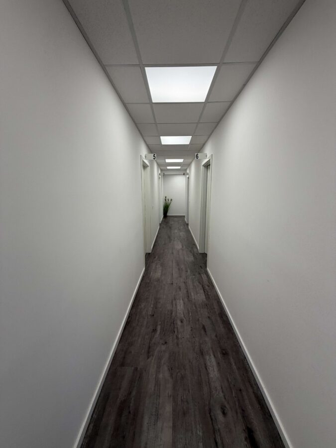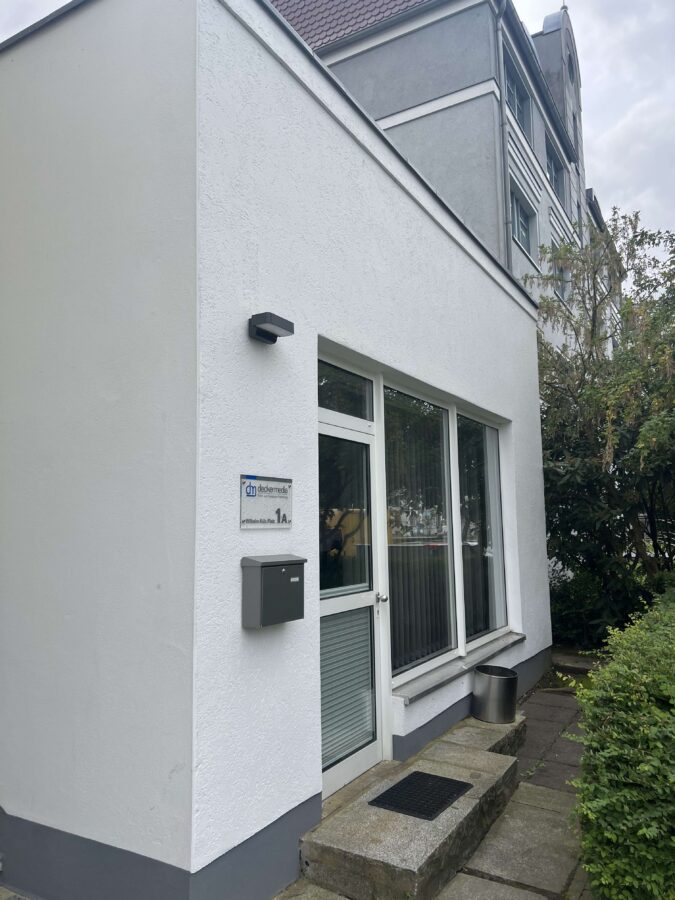 Neben dem Empfangsbereich verfügt die Einheit über einen Personalraum, Küche inkl. EBK, 2 Bäder, 8 Büros sowie einen Lagerraum mit Waschmaschinenanschluss.