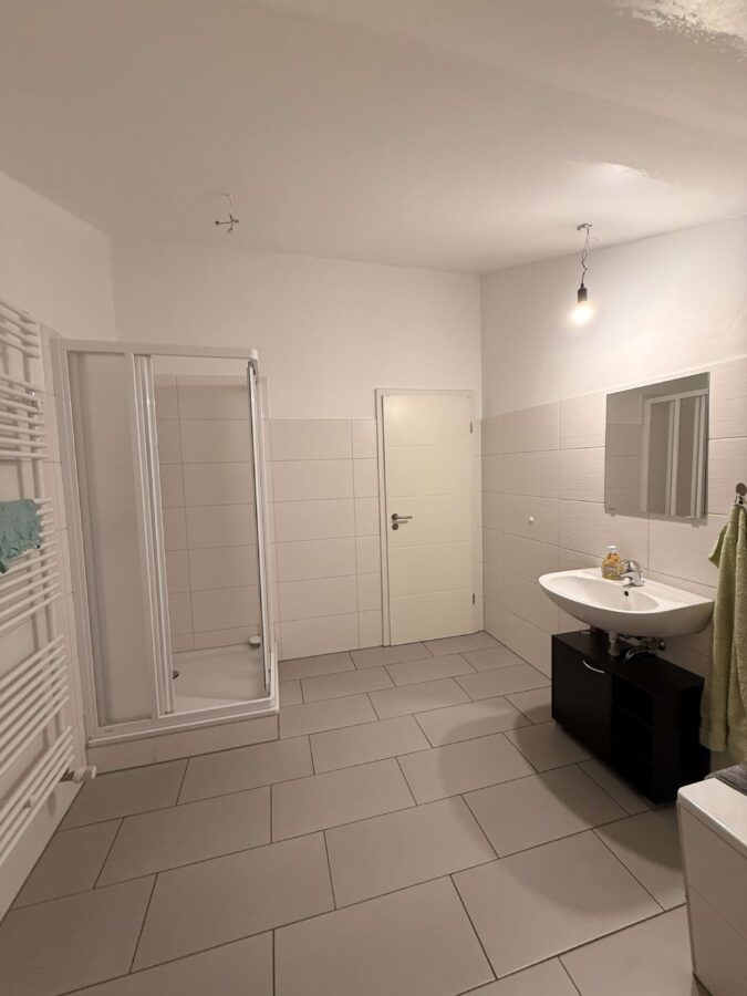 Im hinteren Bereich befindet sich ein Abstellraum, das Vollbad mit Waschmaschinenanschluss und ein kleiner Flur.
