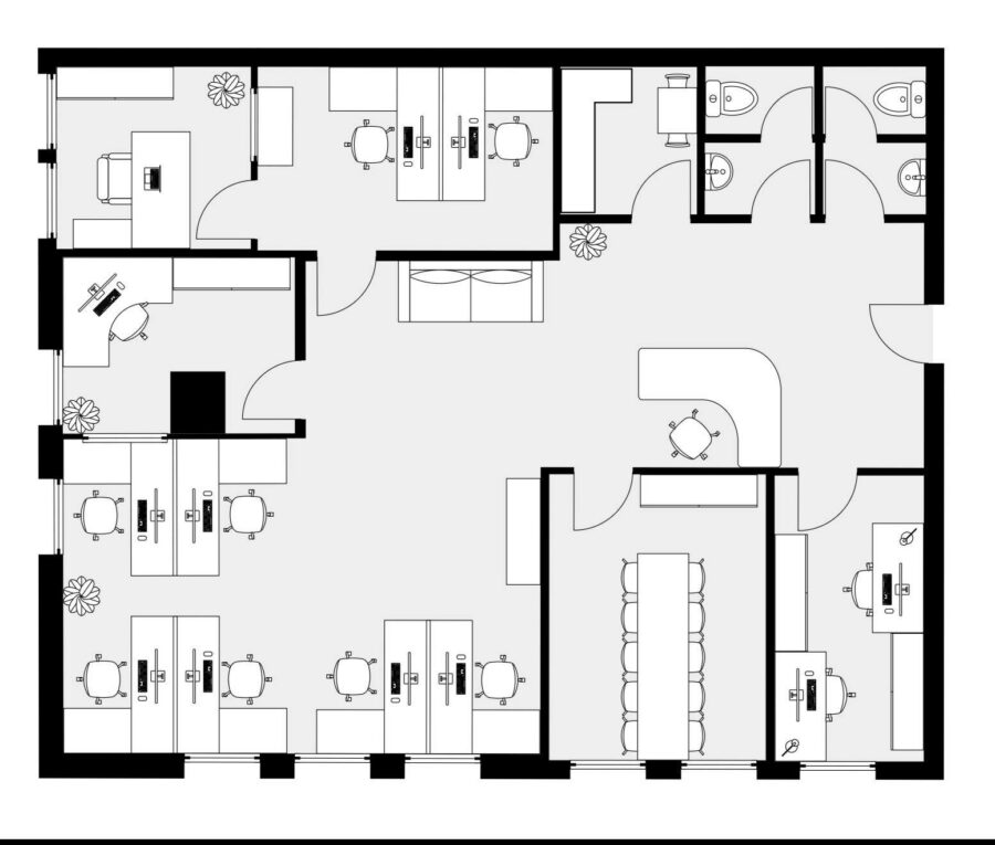 Die Fläche verügt über insgesamt 5 Büroräumen, einen großzügigen offenen Arbeitsbereich sowie einen geräumigen Eingangsbereich, der sich ideal für den Empfang von Kunden oder Patienten eignet.