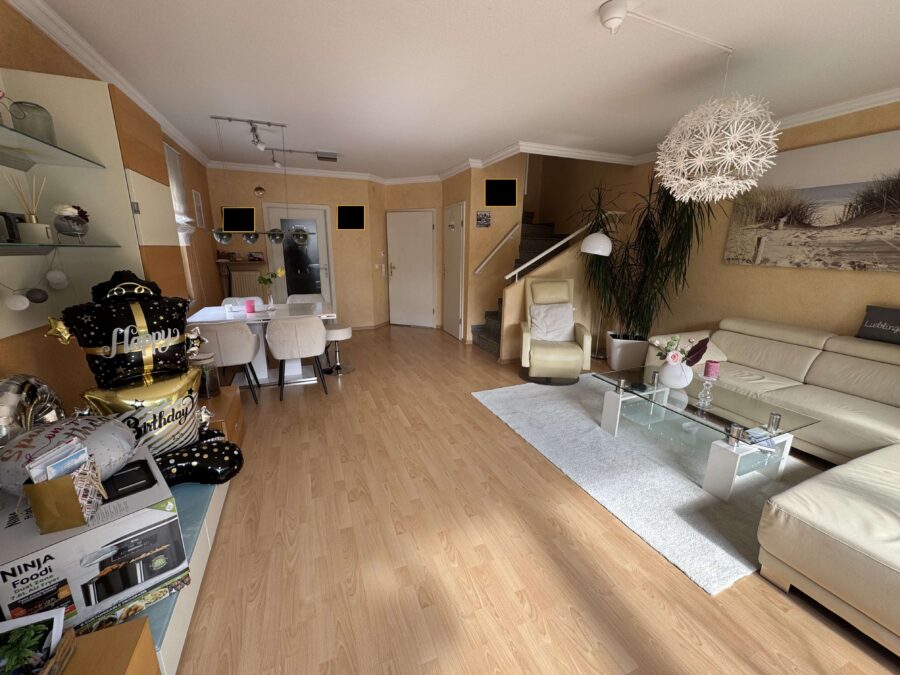 Im Erdgeschoss erwarten Sie ein großzügiges Wohnzimmer mit direktem Zugang zur Terrasse, eine separate Küche sowie ein Gäste-WC.