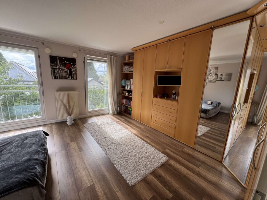 In das Obergeschoss gelangen Sie über eine Natursteintreppe. Dieses verfügt über ein großes, lichtdurchflutetes Zimmer, das aus zwei Kinderzimmern zusammengelegt wurde, ein weiteres Schlafzimmer sowie ein Tageslichtbad mit Badewanne. Hier besteht die Möglichkeit, eine zusätzliche Dusche einzubauen.